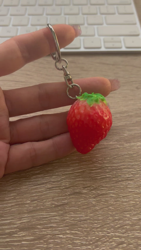 Bright, sweet, and bursting with charm — this Strawberry Keychain captures the look of a perfectly ripe strawberry, from its vibrant red color to its lifelike seeds and fresh green cap. Handcrafted with realistic detail, it’s a cheerful accessory that adds a pop of freshness to your keys, bag, or backpack.